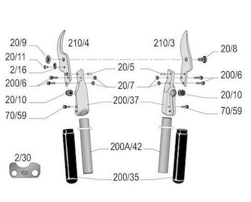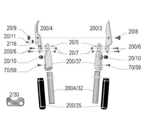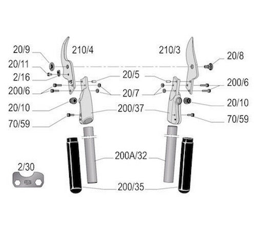 FELCO 200A-40 Two-hand pruning shear | Length 40 cm STRAIGHT Cutting Head
